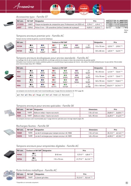 Les tampons non encrés de code Z sont recommandés pour l'usage d'encres standards réf. 7011 page 30.